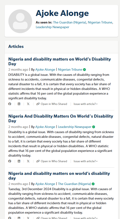 Ajoke Alonge -- As seen in: The Guardian (Nigeria), Nigerian Tribune, Leadership Newspaper